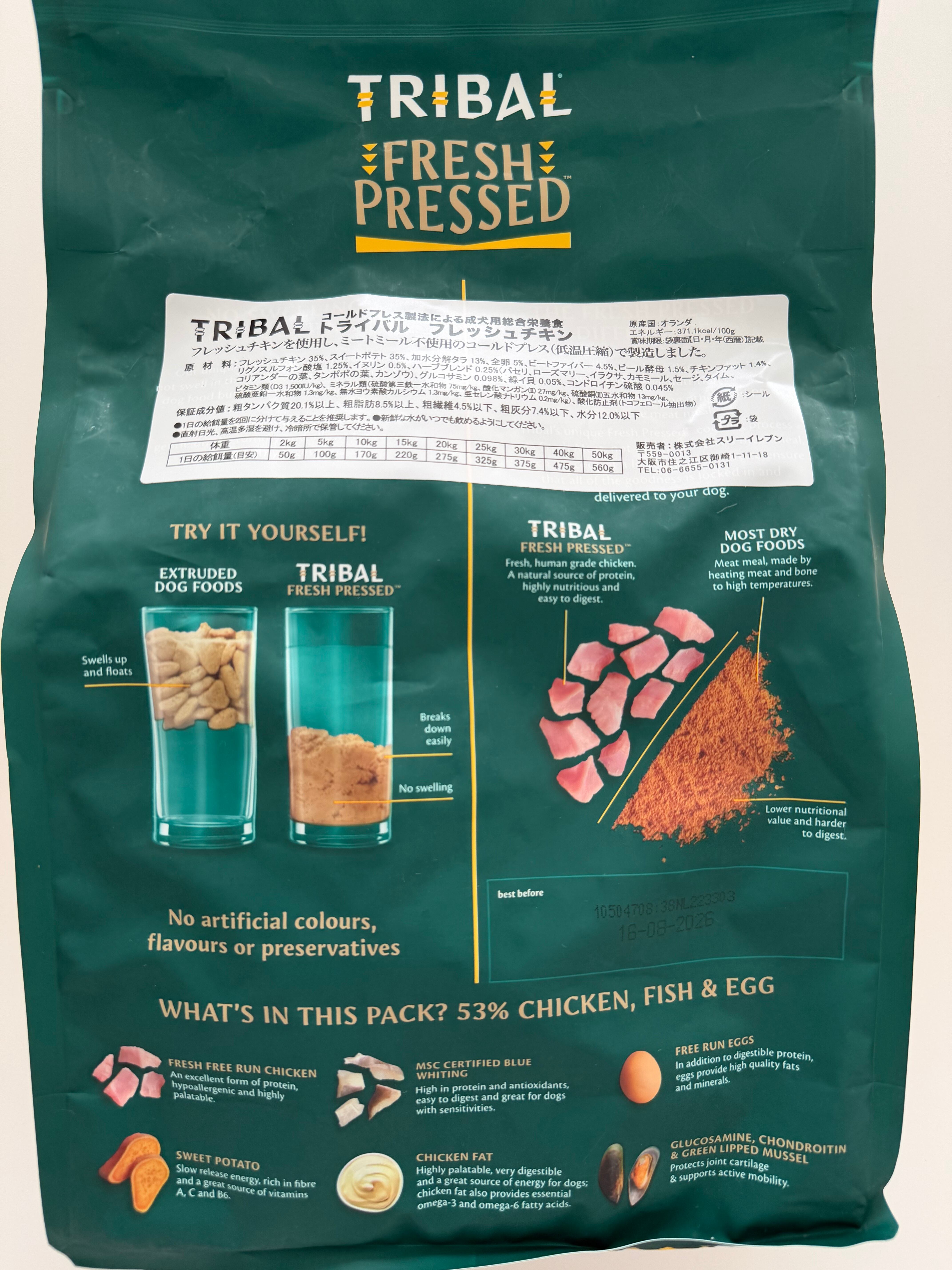 トライバルのチキンは自然に近い環境で放し飼いで飼育され、肉質や栄養素も最高品質。低脂肪、低カロリーで皮膚や粘膜の健康維持に欠かせないビタミンAも豊富に含まれています。